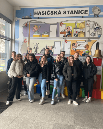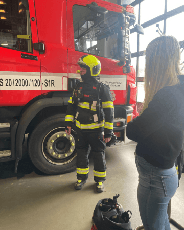 V areálu se nachází i vlastní čerpací stanice. Také se studenti dozvěděli, jak často a k čemu všemu hasiči vyjíždějí, tedy co je jejich náplní práce. Prohlédli si veškeré vybavení, kterým hasiči disponují, potěžkali si vystříhávací nůžky a vyzkoušeli si i výstroj.
