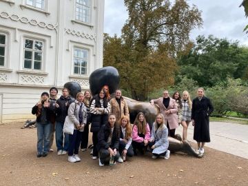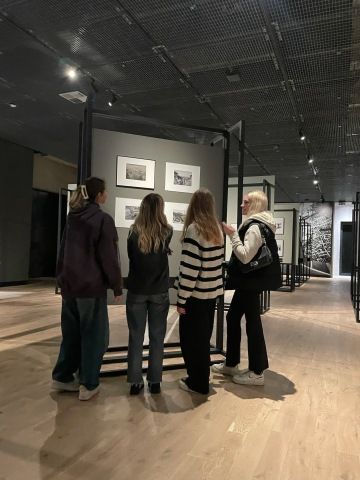 Před samotnou návštěvou šli studenti na Kampu kolem Lennonovy zdi, pak kolem Werichovy vily ke galerii Kampa, kde jsou známé sochy miminek a dvou mužů stojících na mapě České republiky od sochaře Davida Černého.