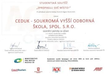 Dne 14.03.2025 se studenti 1.CR zúčastnili na veletrhu HOLIDAY WORLD & REGION WORLD, kde se konala studentská soutěž "Zpropaguj své místo!"