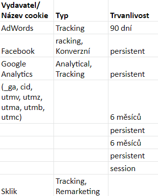 Jaké soubory cookie používáme